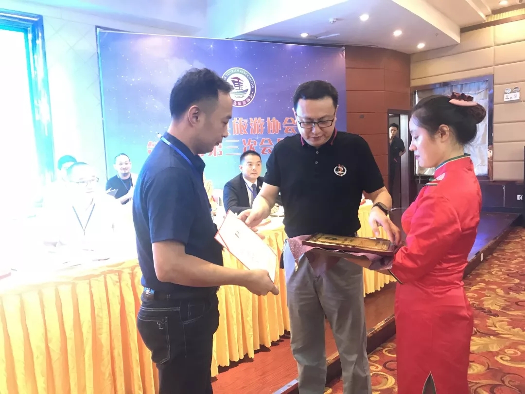 ▲县文化体育和旅游局党组书记、局长杨波先生为新增常务理事单位授牌