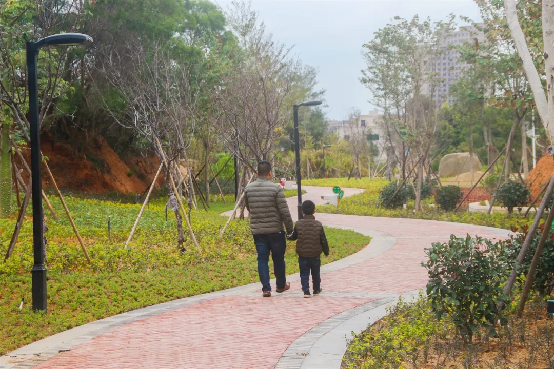 行走在公园步道之中