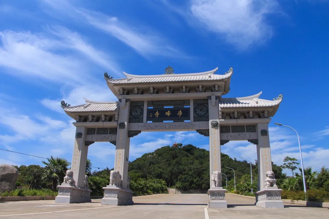 蓝天、白云、大海、寺庙以及游人