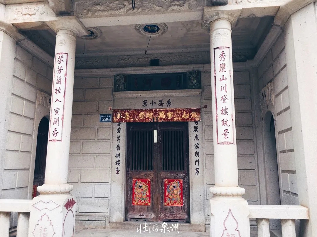 事实上,故居包括洋楼和林家古厝。三层洋楼为两进三开间硬山式与骑楼式相结合的建筑。一二层为石构,三层红砖砌就。屋内布局同样是闽南古厝楼化演变而成。楼顶对联““最喜座中先得月,不妨睡处也看山”尤为动人。
