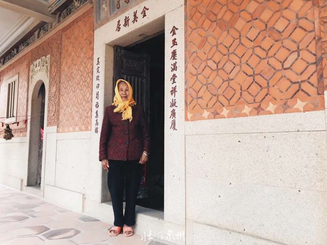 老人三岁从晋江被抱到锦水村,嫁给了林家,已经不记得出生的地名了。早期村里很多人出番到缅甸仰光。她的公公,也就是屋子的主人,那时候就在缅甸仰光谋生。1945年返乡建造洋楼,历时九年才建成。老人说,屋里原来住着四兄弟,如今开枝散叶,四处移居。