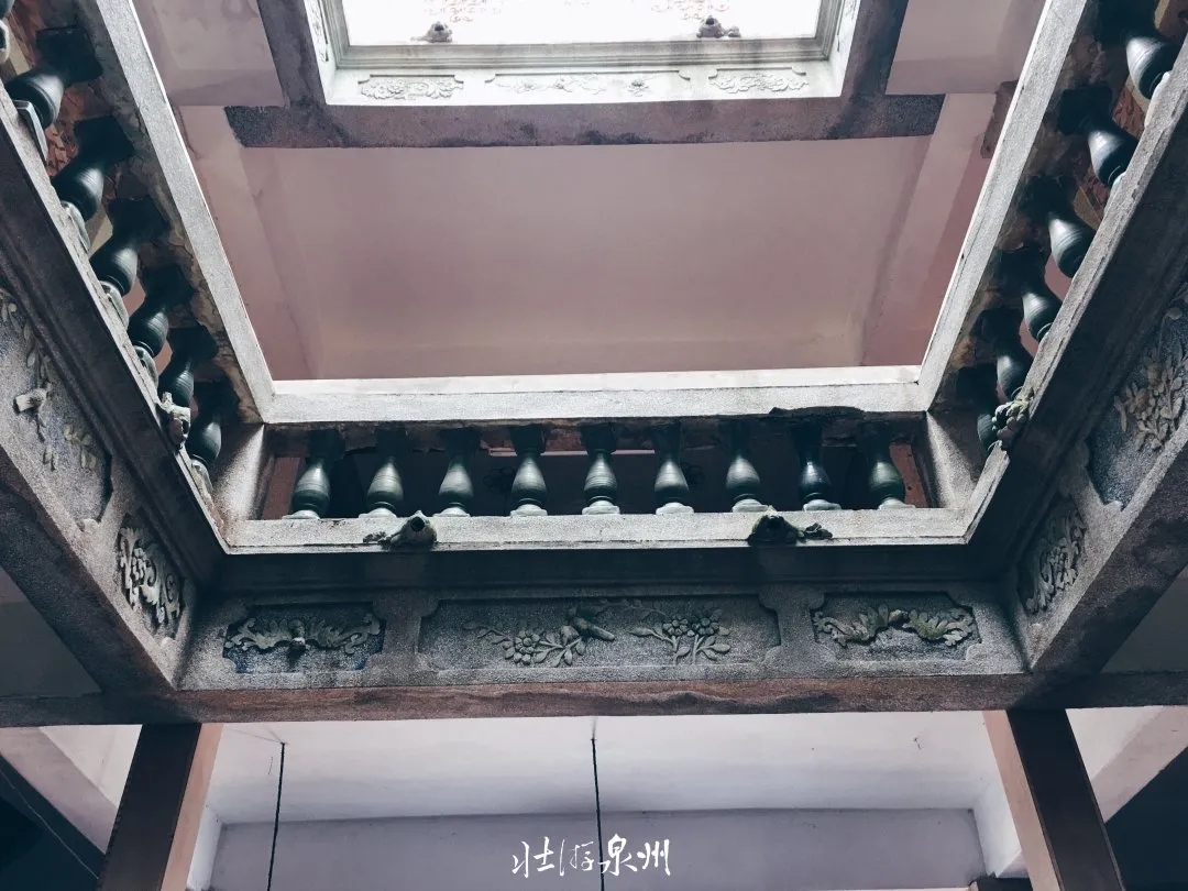 楼里住着陈淑华老人,老人热情邀我到屋里参观。屋内沿袭了传统的闽南古大厝布局,两进三开间双榉头,带天井和后轩。老人介绍,外墙面的很多琉璃瓷雕在那个特殊的历史时期里被破坏掉了。老人还提醒,秀芬楼是有左右护厝的,只不过是石板建成,乍一看会以为是普通的石头厝。