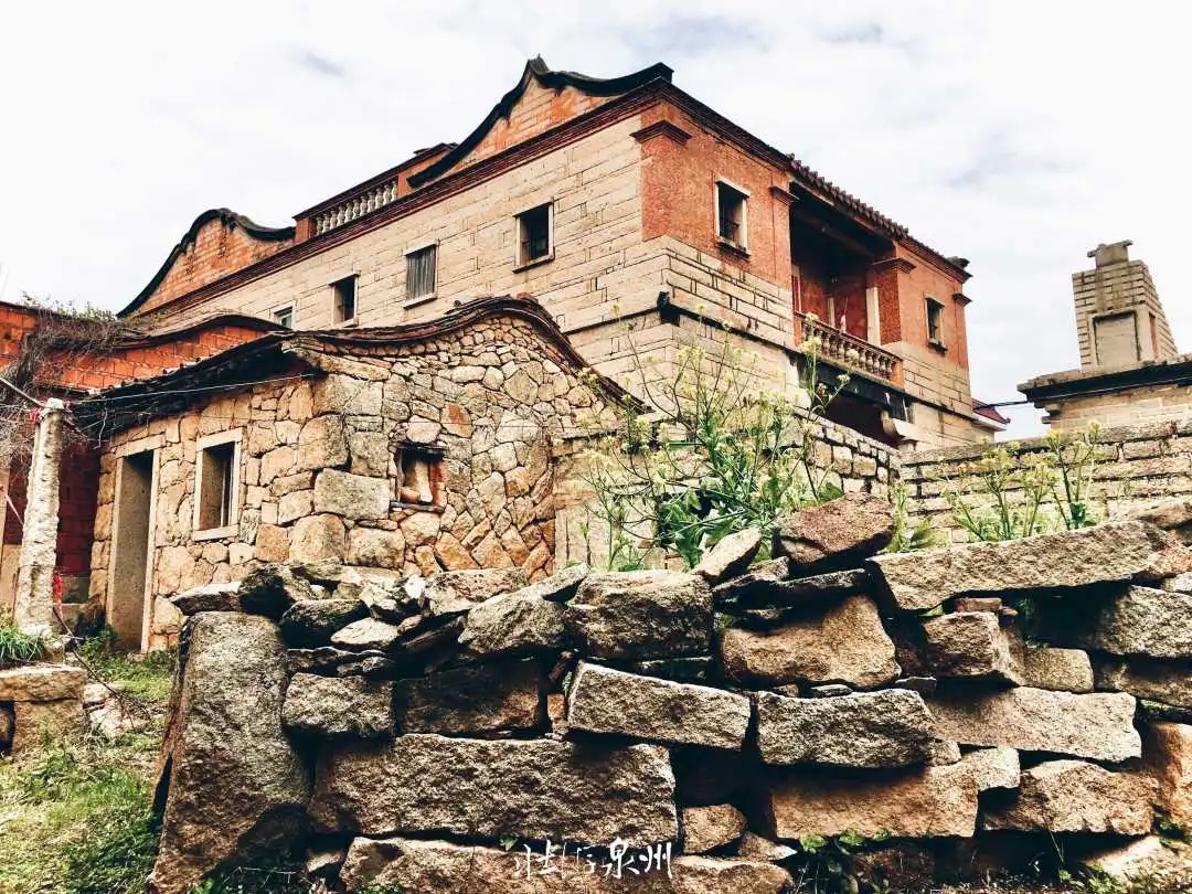 六七十年代开始,建材短缺,将石头组合成各种造型的房屋,是那个朴素年代的普遍做法。偶有穿插几座精美的南洋楼和闽南官式古大厝,让人忍不住驻足,多看几眼。