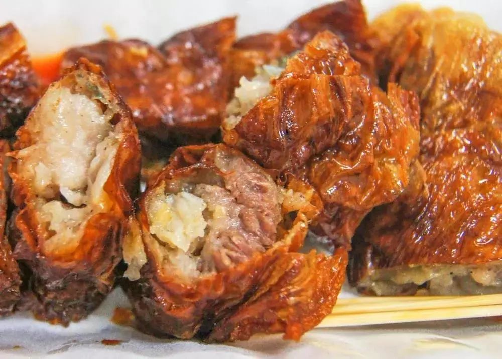 鱼卷、地瓜粉团、豆干、蟹肉粥、