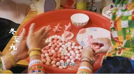 冬至时,一家老小会亲手搓冬至圆,热情好客的她们,同样通过美食的方式,盛情邀请着亲朋好友们回家团圆。