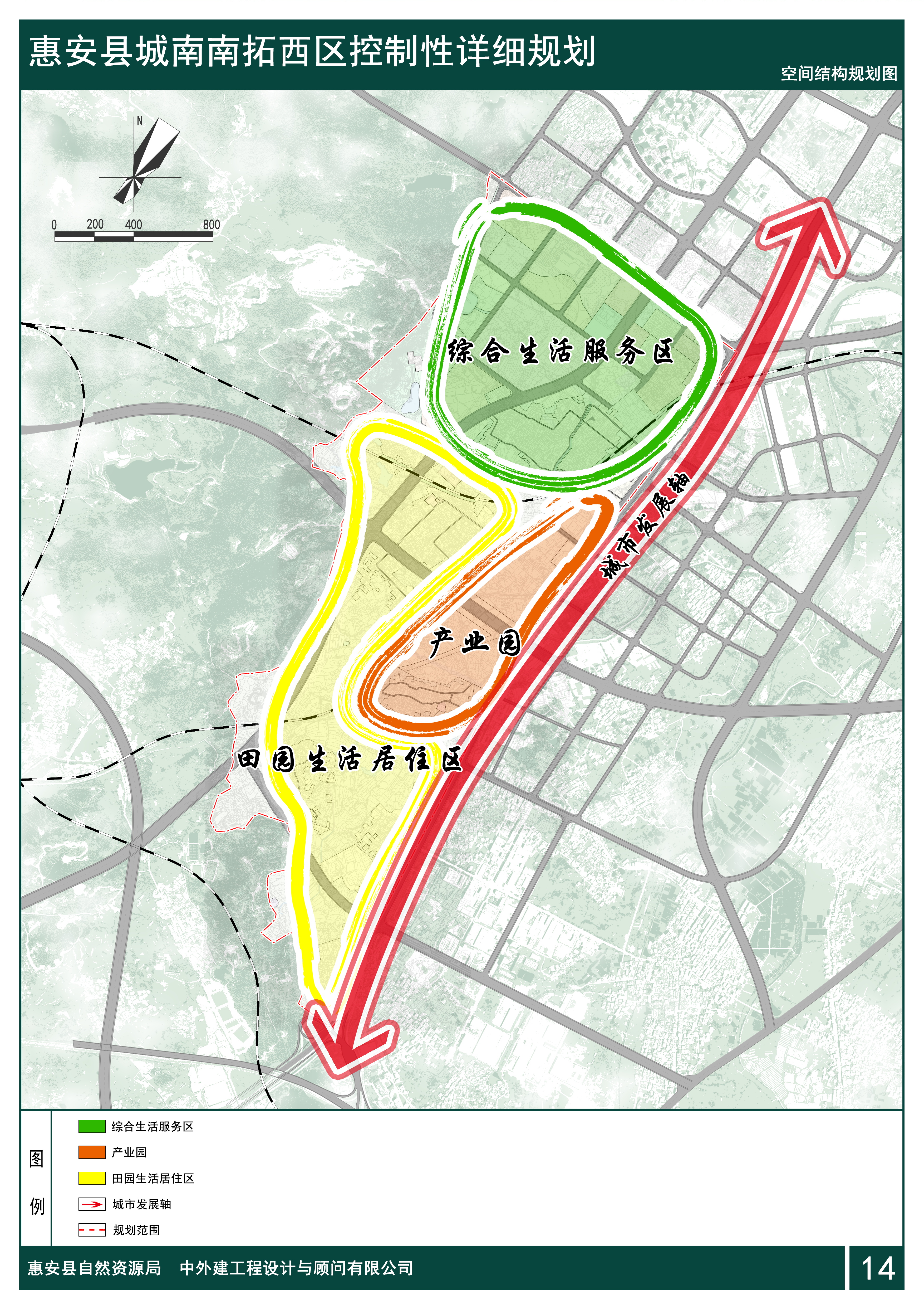 规划形成“一轴三区”的规划结构。