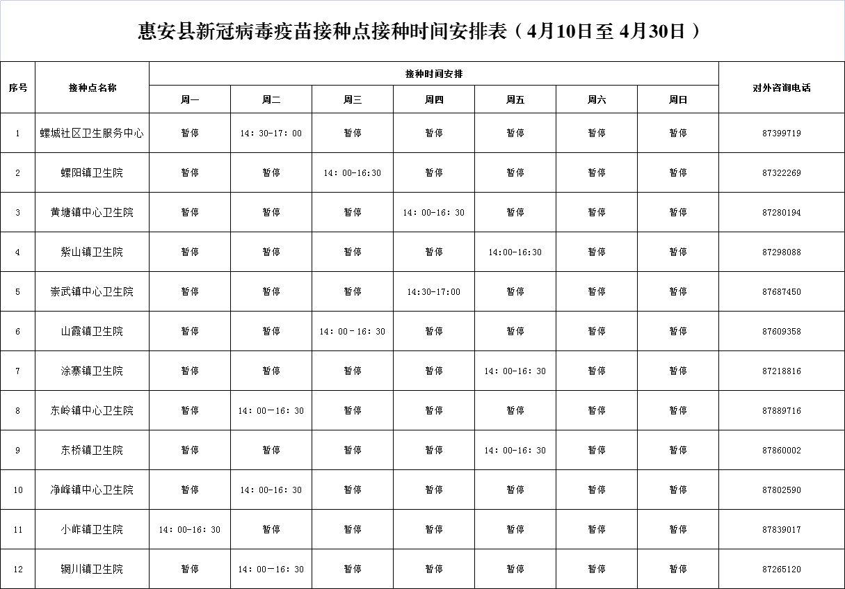 bsport体育 新冠病毒疫苗接种点接种时间安排表(4月10日至4月30日))