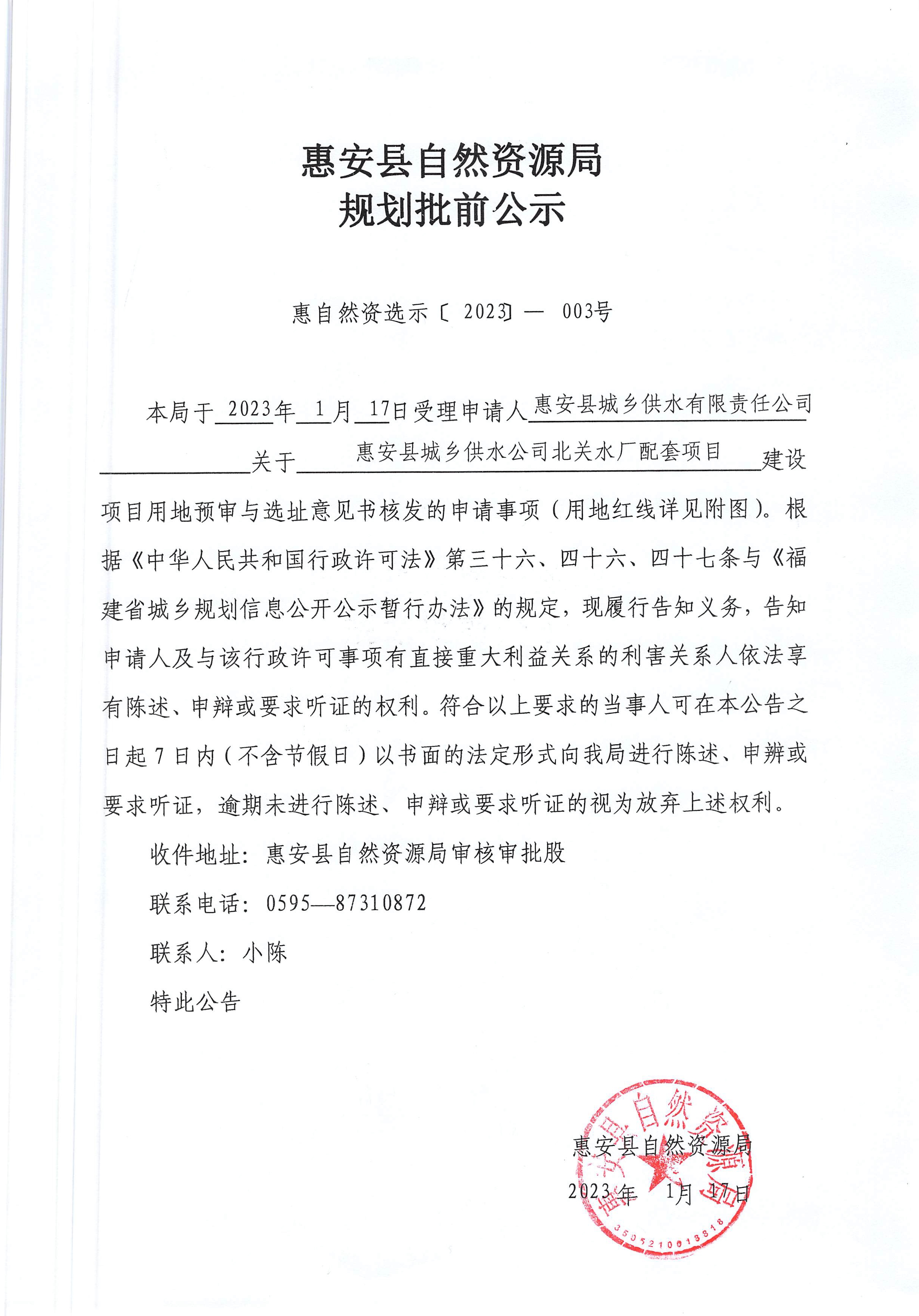bsport体育 城乡供水公司北关水厂配套项目 建设项目用地预审与选址意见书规划批前公示