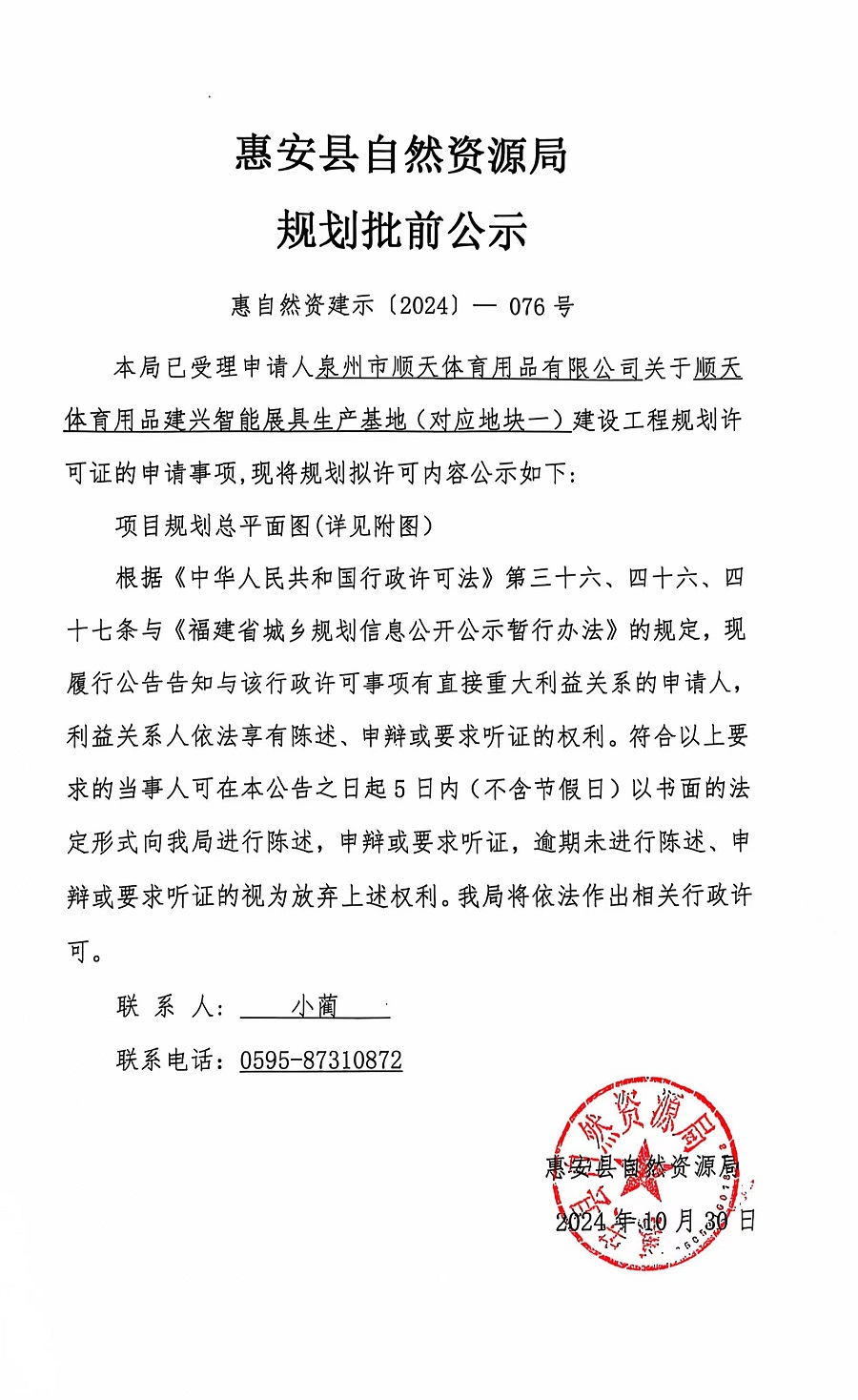 顺天体育用品建兴智能展具生产基地(对应地块一)建设工程规划许可证批前公示