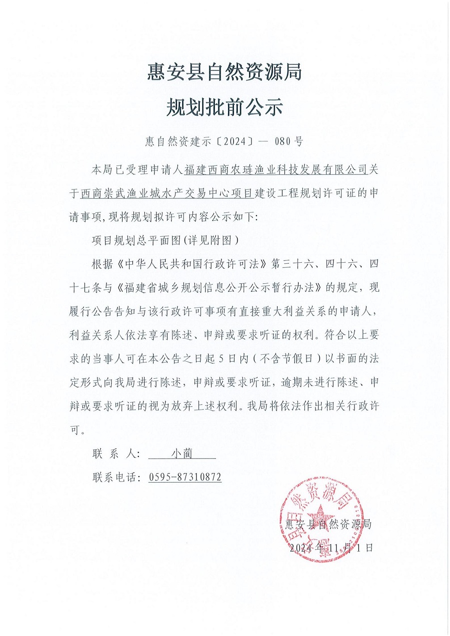 西商崇武渔业城水产交易中心项目建设工程规划许可证批前公示