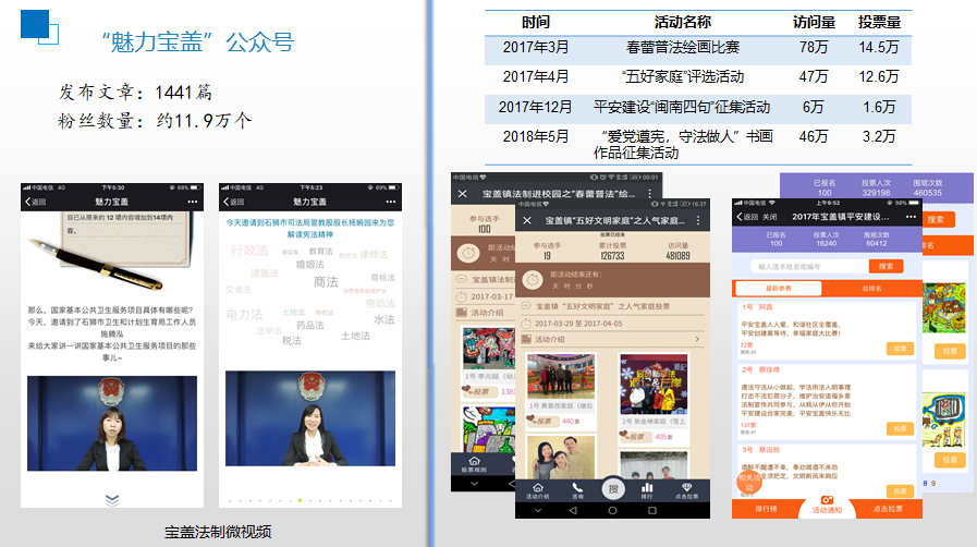 石狮市宝盖镇强化公微平台建设,形成以镇级公微“魅力宝盖”为主,20个村(社区)和2个工业园区公微为辅的“1+22”公微矩阵,目前镇级公微号已发布文章1441篇,粉丝数达11.9万人,呈上升态势。为解决群众办证审批难题,在“魅力宝盖”公微上开设“网上办证”版块,将服务窗口前移,推行“指尖办证”。群众只需在公微平台上提交相关材料,足不出户即可办理32项审批事项,其中21项县级审批事项的预审批、11项镇级审批事项。同时,通过在线审批方式,镇级工作人员可充分利用碎片化时间,随时随地审批,有效避免因下乡、开会、外出等原因未能及时办理审批事项的情况,缓解服务窗口的压力,节约办事时间和成本,提高审批效率。自2016年10月份运行以来,群众通过公微平台“指尖办证”的事项达1556件,其中县级审批事项721件、镇级事项835件。
